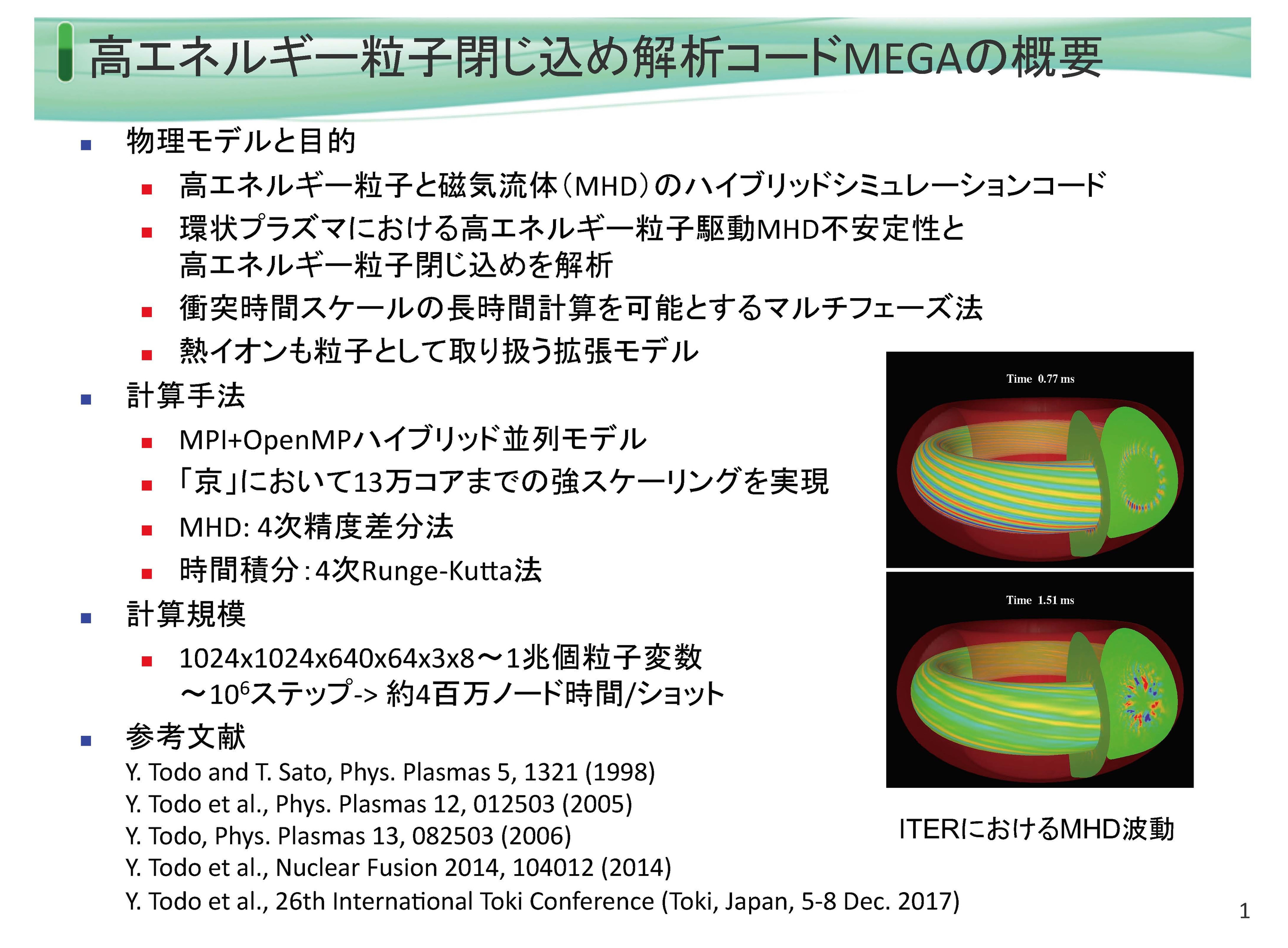 - Y. Todo, Multi-phase hybrid simulation of energetic particle driven magnetohydrodynamic instabilities in tokamak plasmas, New Journal of Physics 18, 115005, (2016).