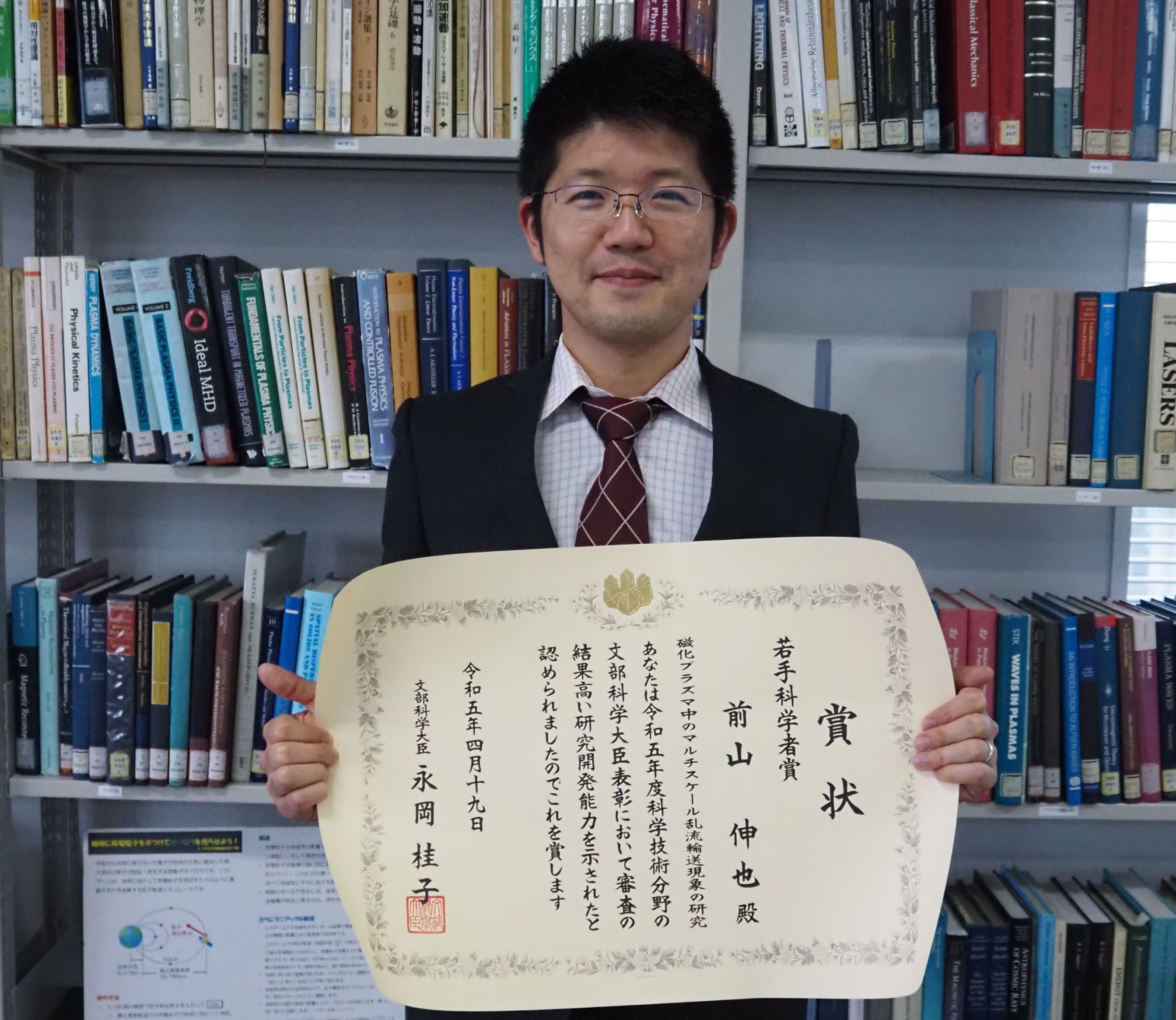 講師の前山が進めてきた「磁化プラズマ中のマルチスケール乱流輸送現象の研究」に関する成果が表彰されました。